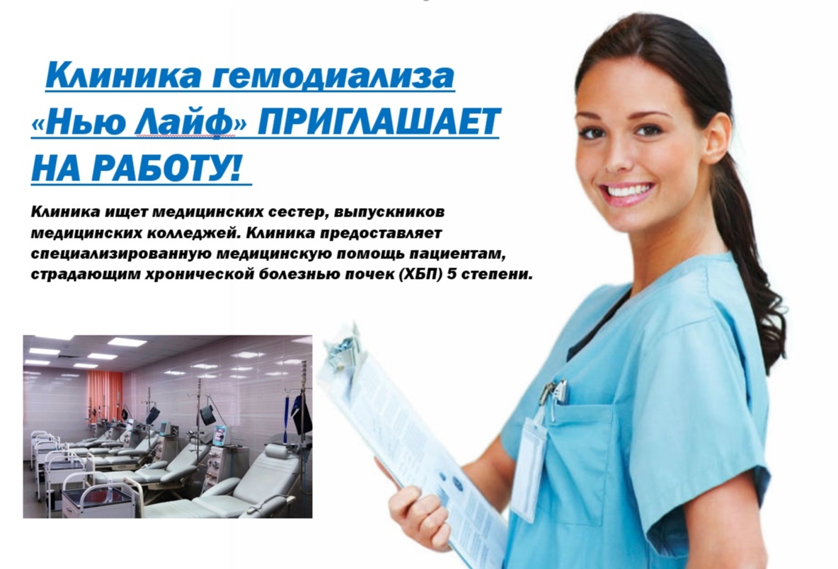 Клиника гемодиализа «Нью Лайф» ПРИГЛАШАЕТ НА РАБОТУ!
