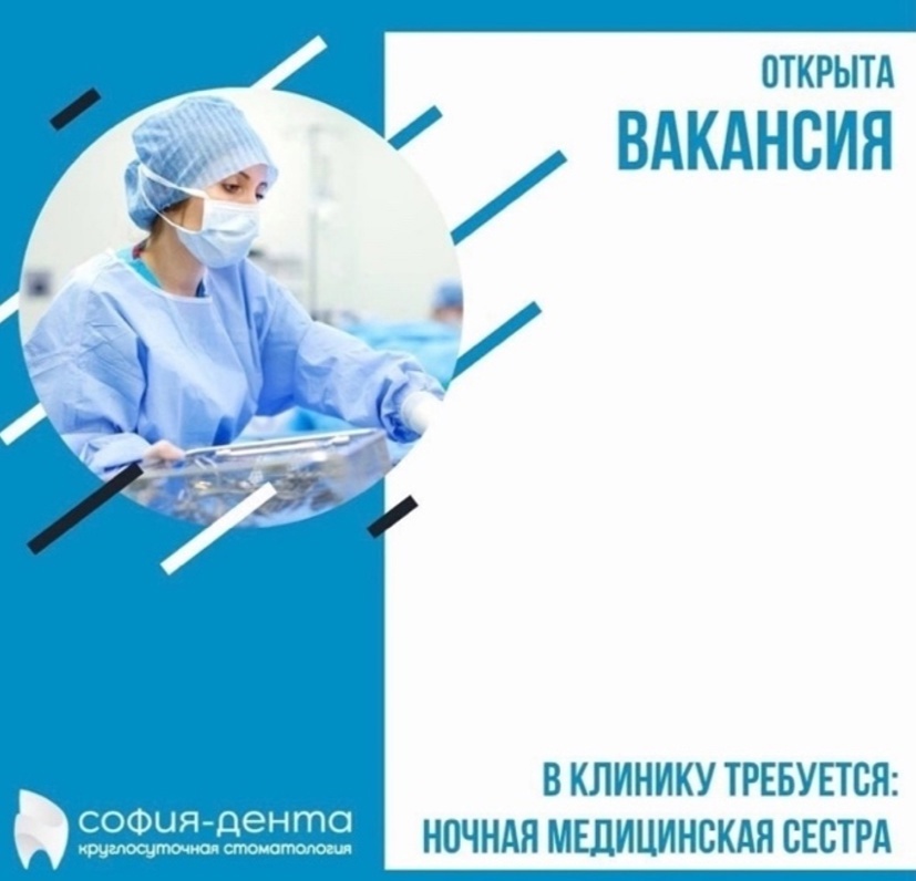 СТОМАТОЛОГИЧЕСКАЯ КЛИНИКА «СОФИЯ-ДЕНТА» ПРИГЛАШАЕТ НА РАБОТУ НОЧНУЮ МЕДИЦИНСКУЮ СЕСТРУ!